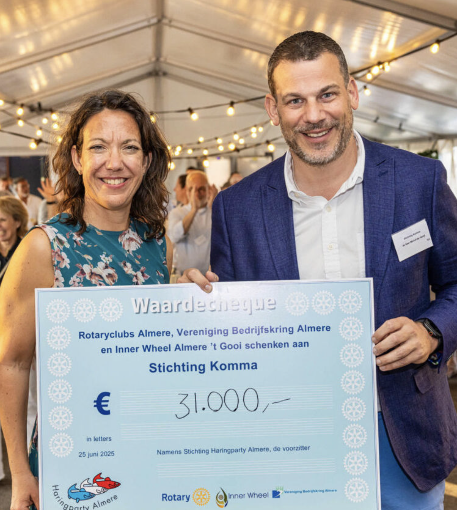 Vorige editie bracht ruim 160 gasten samen voor een onvergetelijke avond met prachtig uitzicht op het Gooimeer, premium prosecco, verse Hollandse Nieuwe en een smaakvol walking dinner van chefs Lars Bertelsen en Chen Margolin. Het hoogtepunt was de kunstveiling, met unieke items zoals gesigneerde Almere City FC-shirts, diners met de burgemeester, schilderijen, designer tassen en het speciaal beschilderde haringvaatje van Majeed Saeeyan. Dankzij de steun van de gasten werd €31.000 opgehaald voor Stichting Komma, het initiatief dat families helpt om levensverhalen van terminaal zieke ouders vast te leggen.